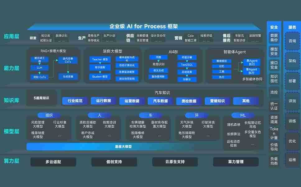 端到端的一站式AI工作空间深度融合了从企业战略规划到日常经营的全流程业务板块,,,,定向解决车企内部领域多、、、部门多、、链条长、、、场景碎片化等难题,,,支持车企快速构建以AI为核心的生产力写作体系,,,实现任务执行与AI能力的无缝集成与交互