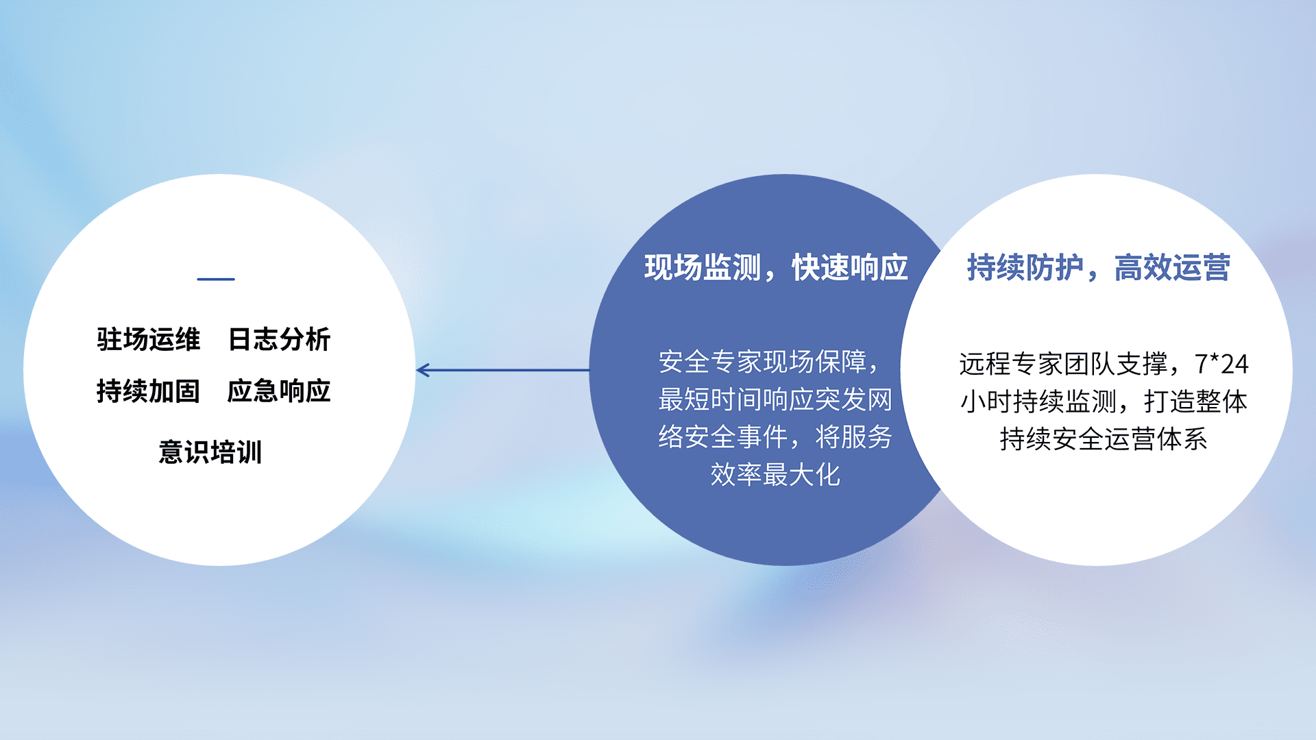7X24小时持续监测安全事件,保持安全策略有效性,降低资产脆弱性风险,,,精准拦截黑客攻击,,,减少被黑客利用的机会,,,,第一时间遏制,,,,降低损失。。。。